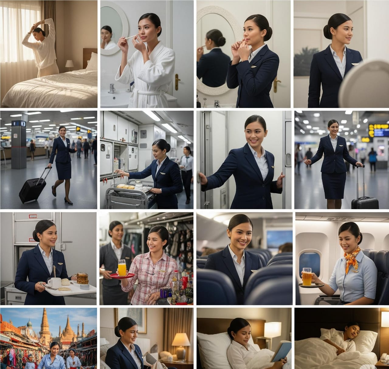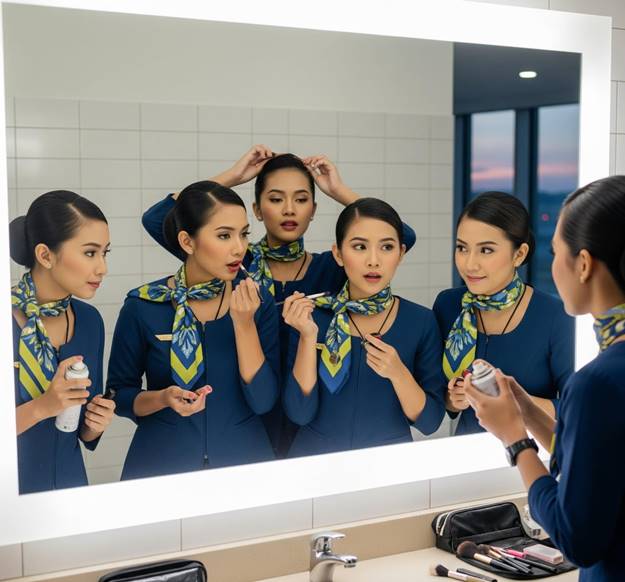 Dari awal hari hingga selesai tugas, kehidupan seorang pramugari penuh dengan tanggung jawab. Mereka harus tampil rapi, sopan, dan ramah, namun tetap siap menghadapi situasi mendesak kapan pun. Oleh karena itu, menjadi pramugari menuntut:
