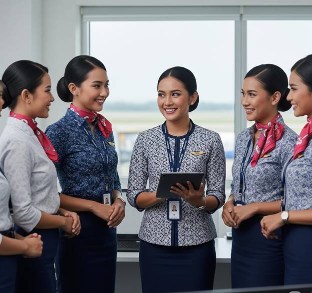 Sebelum naik ke pesawat, kru kabin wajib mengikuti briefing pra-penerbangan. Di sesi ini, semua anggota kru—termasuk pramugari, kapten, dan kopilot—akan membahas:
