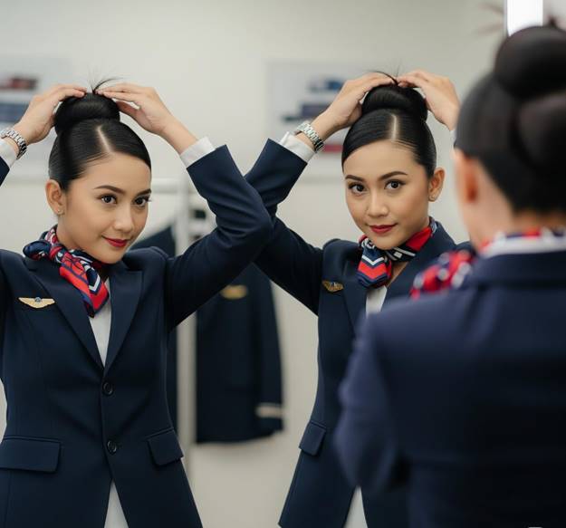 Dalam industri penerbangan yang sangat kompetitif dan menuntut standar yang ketat, perhatian terhadap detail kecil sangatlah penting. Penampilan yang rapi dan terawat tidak hanya membantu menciptakan kesan pertama yang positif di mata penumpang, tetapi juga menjadi indikator bahwa kamu benar-benar siap menjalankan tugas dengan penuh tanggung jawab. Setiap elemen mulai dari kebersihan rambut, tata rias yang natural, hingga keserasian seragam dan aksesori semuanya menunjukkan bahwa kamu memiliki perhatian terhadap detail yang tinggi dan sikap profesional yang mendalam. Sikap ini sangat krusial karena dalam dunia penerbangan, detail sekecil apa pun dapat memengaruhi kenyamanan dan kepercayaan penumpang selama penerbangan berlangsung. Dengan demikian, penampilan pramugari yang sempurna adalah refleksi dari kesiapan mental dan fisik untuk menghadapi tantangan pekerjaan, sekaligus memperkuat citra maskapai di mata publik.