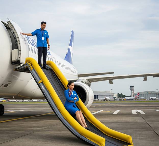 ๐น๏ธ 12. Jumpseat, Slide, dan Evacuation Drill: Peralatan Keselamatan Kru Kabin