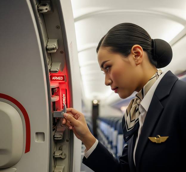 Jumpseat adalah kursi khusus yang digunakan oleh kru kabin saat takeoff dan landing, biasanya terletak di dekat pintu pesawat. Sedangkan slide adalah perosotan darurat yang mengembang secara otomatis ketika pintu dibuka dalam keadaan darurat. Kru kabin wajib menguasai cara menggunakan semua peralatan keselamatan ini agar bisa menjalankan tugas dengan baik. Selain itu, mereka harus rutin melatih prosedur evakuasi melalui evacuation drill untuk memastikan kesiapan menghadapi situasi darurat. Pemahaman dan latihan yang konsisten sangat penting demi keselamatan penumpang dan kru.
