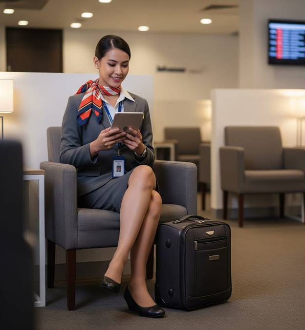 Selain jadwal terbang yang padat, pramugari juga sering diberi tugas standby, yang berarti harus siap dipanggil kapan saja jika ada penerbangan mendadak, kru yang berhalangan, atau perubahan operasional. Tugas standby ini bisa dilakukan dari rumah (home standby) atau langsung di bandara (airport standby). Meskipun saat standby kamu tidak selalu terbang, tetap dianggap sebagai waktu kerja yang menuntut kesiapan penuh. Oleh karena itu, pramugari harus selalu mengenakan seragam lengkap dan membawa koper serta dokumen penting saat standby. Kondisi ini menuntut kesiapan fisik dan mental yang tinggi setiap saat.