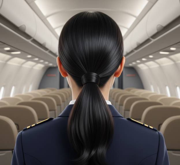 Gaya low ponytail sleek menghadirkan kesederhanaan yang tetap memancarkan profesionalisme kelas tinggi dan terlihat rapi sepanjang hari. Rambut yang ditarik lurus ke belakang menciptakan tampilan tegas yang ideal untuk wajah bulat, membuat garis wajah lebih proporsional dan terstruktur. Sementara itu, low ponytail memberikan sentuhan lembut bagi wajah tirus agar tidak terlihat terlalu panjang atau kaku. Gaya ini juga sangat nyaman dipakai meski bertugas dalam durasi panjang di kabin pesawat. Tampilan sleek membuatnya tetap terlihat premium meskipun desainnya sederhana dan minim aksesori tambahan. Gaya ini mudah dikombinasikan dengan aksesori kecil untuk menambah kesan profesional tanpa berlebihan. Banyak pramugari menyukai gaya ini karena cepat dibuat, praktis, dan tetap rapi sepanjang hari. Selain itu, gaya ini sangat cocok untuk sesi briefing maupun tugas layanan kabin yang menuntut kerapian tinggi dan konsistensi tampilan.