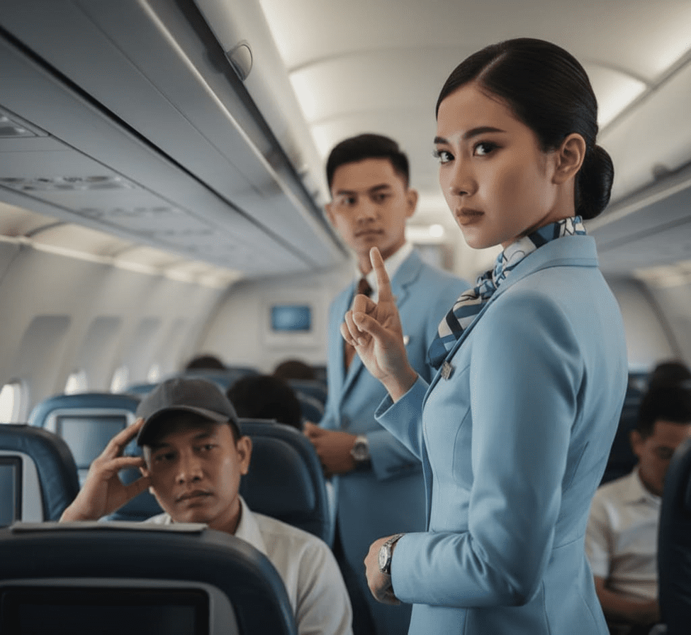 Penumpang yang tidak patuh terhadap aturan kabin menjadi tantangan tersendiri bagi pramugari selama penerbangan. Contohnya, ada penumpang yang enggan mengenakan sabuk pengaman, menggunakan perangkat elektronik saat dilarang, atau bahkan bersikap kasar kepada kru. Dalam situasi seperti ini, pramugari harus mampu tetap tenang dan profesional, berbicara dengan sopan namun tegas agar instruksi keselamatan dapat dipatuhi. Kemampuan komunikasi yang baik sangat penting untuk meredakan ketegangan tanpa memperburuk suasana di dalam kabin. Selain itu, pramugari juga harus pandai membaca situasi dan menggunakan conflict management skills agar dapat menangani masalah dengan cepat dan efektif. Pelatihan khusus dalam menghadapi penumpang sulit menjadi bagian wajib dalam program pembinaan setiap calon pramugari. Kesiapan ini membantu kru kabin menjaga keamanan, kenyamanan, dan ketertiban selama penerbangan. Dengan kemampuan profesional dan strategi yang tepat, pramugari dapat memastikan semua penumpang merasa aman dan terlayani dengan baik sepanjang perjalanan.