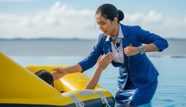 Kecelakaan penerbangan memang bukan sesuatu yang ingin dibayangkan siapa pun, namun justru karena itulah latihan keselamatan menjadi sangat penting — termasuk skenario darurat di atas air atau ditching. Dalam pelatihan pramugari profesional, skenario kecelakaan laut bukan hanya teori semata, tetapi diwujudkan dalam bentuk simulasi langsung yang intens. Hal ini bertujuan agar pramugari memiliki respons cepat, tepat, dan tidak panik saat menghadapi situasi yang mengancam nyawa.
