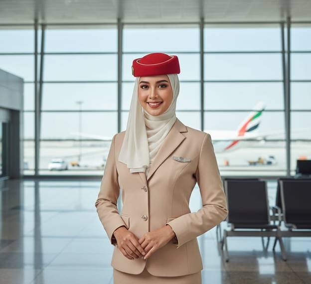 Emirates menjadi salah satu maskapai dengan seragam cabin crew yang paling dikenal di dunia. Seragam ini menggabungkan nuansa klasik Timur Tengah dengan gaya modern yang tak lekang oleh waktu. Warna krem yang lembut berpadu harmonis dengan hijab samping merah menyala dan hat khas berlogo emas. Setiap elemen seragamnya mencerminkan elegance, keramahtamahan, dan standar layanan premium. Tidak hanya menarik secara visual, desainnya juga dibuat ergonomic untuk kenyamanan selama penerbangan panjang. Bahkan dari kejauhan, penumpang bisa langsung mengenali kru Emirates hanya dari penampilannya. Seragam ini juga menekankan branding maskapai yang kuat melalui fashion. Inilah contoh bagaimana visual identity dapat memperkuat kesan profesional dan eksklusivitas layanan.