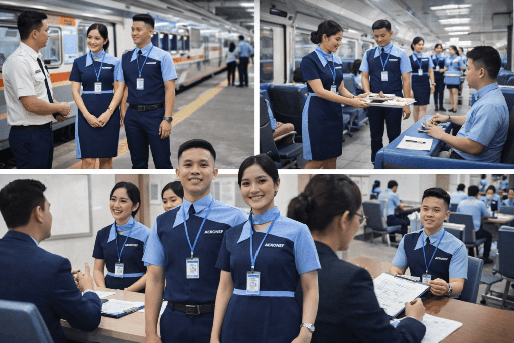 Dengan pelatihan yang konsisten dan terarah di Aeronef Academy, lulusan SMA/SMK dapat memiliki dasar yang kuat untuk membangun karier sebagai pramugari kereta api secara profesional dan percaya diri.