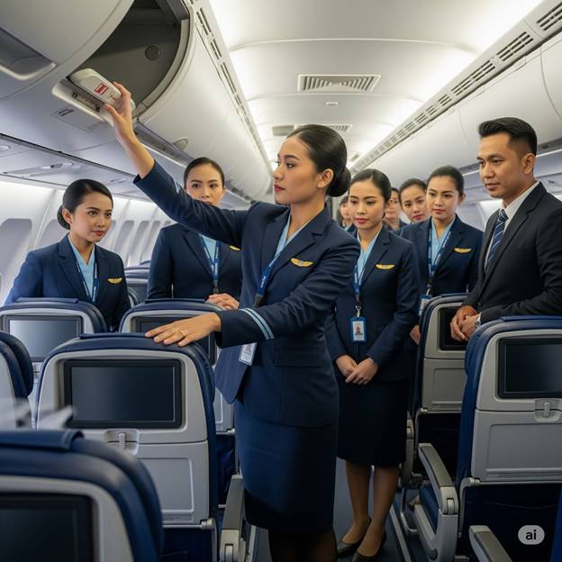 Mengoreksi penumpang dengan kalimat langsung seperti “Kamu salah” sangat tidak dianjurkan karena dapat menimbulkan perasaan tersinggung atau memicu konflik di kabin. Pramugari harus mampu menyampaikan koreksi atau informasi dengan cara yang sopan dan diplomatis agar tetap menjaga kenyamanan penumpang. Contohnya, menggunakan kalimat seperti “Maaf, izinkan saya bantu jelaskan…” atau “Boleh saya informasikan…” dapat membuat komunikasi terasa lebih ramah. Pendekatan yang menghargai ini membantu menjaga suasana kabin tetap kondusif dan menghindari perselisihan. Dalam dunia penerbangan, membangun hubungan baik dengan penumpang merupakan prioritas utama demi terciptanya pengalaman terbang yang menyenangkan. Oleh karena itu, penguasaan teknik komunikasi yang halus dan efektif menjadi keterampilan penting bagi setiap pramugari. Dengan komunikasi yang tepat, penumpang merasa didengar dan dihargai, sehingga pelayanan menjadi lebih optimal. Sikap profesional dalam berinteraksi juga memperkuat citra positif maskapai di mata penumpang.