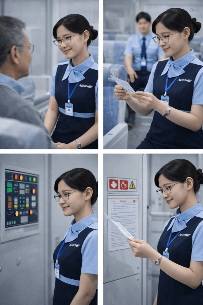 Aeronef Academy memberikan pelatihan lengkap yang sesuai kebutuhan industri transportasi modern. Program pelatihan mencakup komunikasi layanan, grooming dan penampilan profesional, simulasi pelayanan di dalam kabin, hingga latihan menghadapi wawancara dan tes seleksi kerja. Mereka juga memberikan arahan khusus tentang standar kesehatan yang berlaku, termasuk bagaimana menghadapi penggunaan kacamata atau lensa kontak secara profesional sesuai kebijakan perusahaan.
