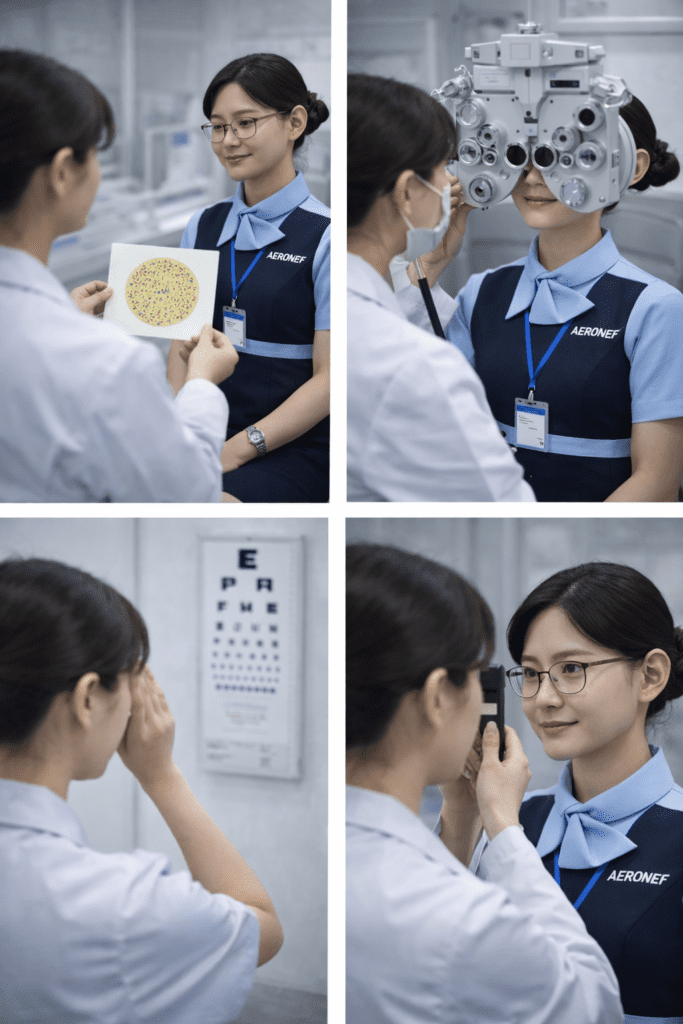 Pemeriksaan kesehatan umumnya mencakup tes ketajaman penglihatan jarak jauh dan dekat, pemeriksaan buta warna, serta evaluasi kondisi umum mata. Ketajaman penglihatan diuji untuk memastikan calon pramugari mampu membaca informasi, mengenali detail dengan cepat, dan tidak mengalami gangguan visual yang dapat menghambat pekerjaan. Tes buta warna juga penting karena beberapa prosedur keselamatan dan indikator visual menggunakan kode warna tertentu.