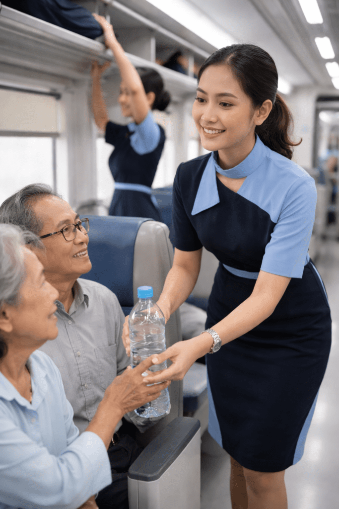 Pramugari kereta api yang mampu berkomunikasi dalam bahasa Inggris memiliki peluang lebih besar untuk ditempatkan pada rute wisata, perjalanan kelas premium, atau layanan kereta yang memiliki standar tinggi. Rute tertentu sering melayani wisatawan mancanegara yang membutuhkan informasi dalam bahasa internasional. Dalam situasi seperti ini, kemampuan bahasa Inggris menjadi nilai tambah yang nyata dan manfaatnya langsung terlihat.