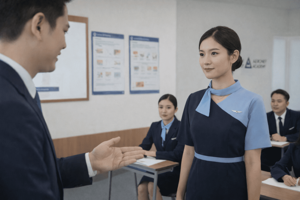 Banyak orang mengira bahwa kandidat yang sudah berpengalaman akan langsung bekerja tanpa pelatihan ulang. Faktanya, setiap pramugari tetap wajib mengikuti training resmi dari maskapai tempatnya bekerja. Training ini mencakup keselamatan penerbangan (aviation safety), emergency procedure, pelayanan kabin, hingga standar operasional maskapai yang sangat detail.