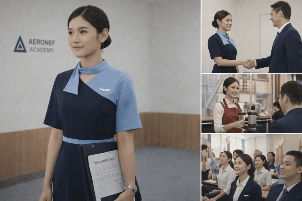 Jadi, jika kamu belum memiliki pengalaman, jangan langsung merasa tidak layak. Selama kamu mau mempersiapkan diri dengan serius dan memilih tempat pembelajaran yang tepat seperti Aeronef Academy, peluang untuk menjadi pramugari tetap terbuka lebar. Pengalaman memang bisa menjadi nilai tambah, tetapi persiapan yang matang adalah kunci utama menuju karier impian di dunia penerbangan