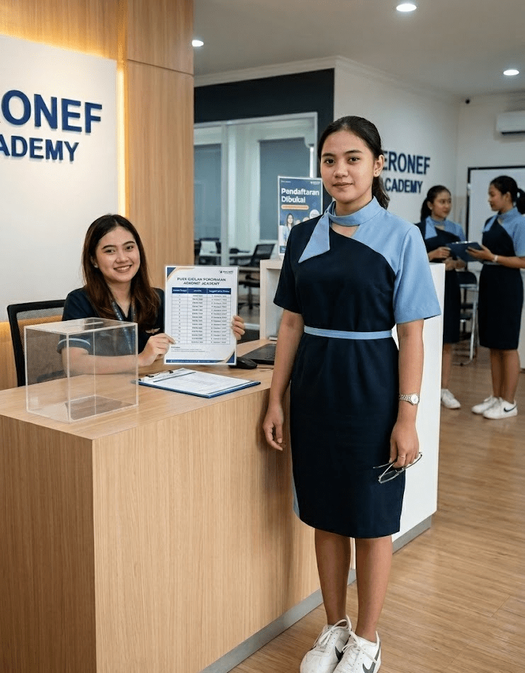 Aeronef Academy tidak hanya fokus pada proses pembelajaran di kelas, tetapi juga pada kesiapan kerja siswa setelah lulus. Aeronef Academy memberikan pendampingan intensif, pembekalan mental, dan latihan simulasi seleksi agar siswa lebih percaya diri saat menghadapi dunia kerja. Aeronef Academy menempatkan kualitas, kedisiplinan, dan profesionalisme sebagai prioritas utama dalam setiap program pelatihannya. Dengan pendekatan yang terstruktur dan berorientasi masa depan, Aeronef Academy membantu siswa menjadikan biaya pendidikan sebagai langkah strategis menuju karir pramugari kereta api yang sukses dan berkelanjutan.