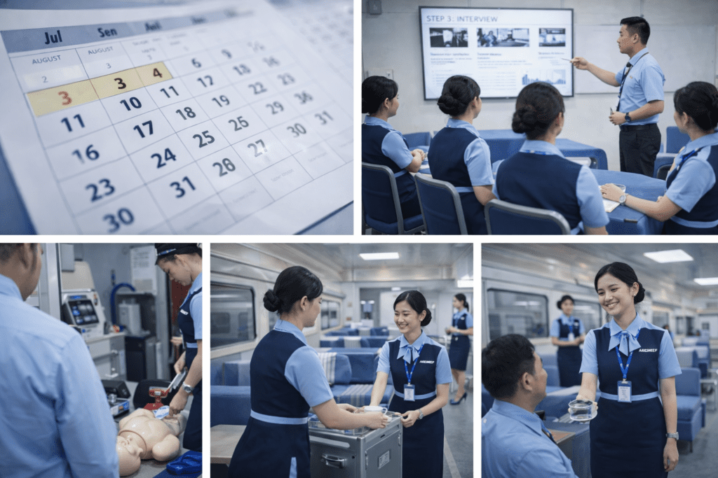 Salah satu alasan biaya sekolah pramugari kereta api bisa lebih terjangkau adalah karena durasi pendidikannya relatif singkat, yaitu sekitar 3–6 bulan. Waktu ini dirancang secara intensif agar siswa mendapatkan seluruh keterampilan penting dalam periode yang efisien. Dibandingkan pendidikan formal seperti kuliah yang membutuhkan waktu tiga hingga empat tahun, program ini jelas lebih hemat dari segi biaya pendidikan maupun biaya operasional sehari-hari.