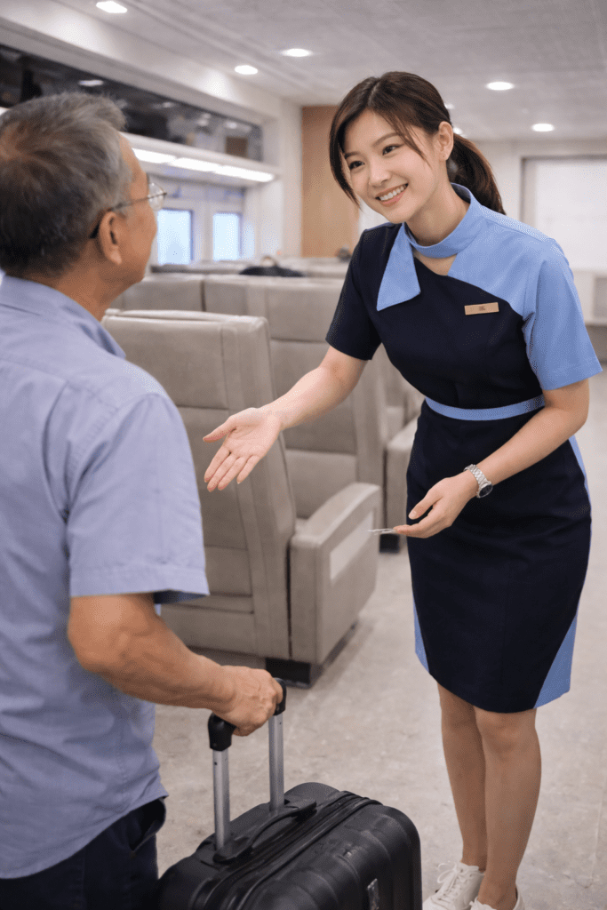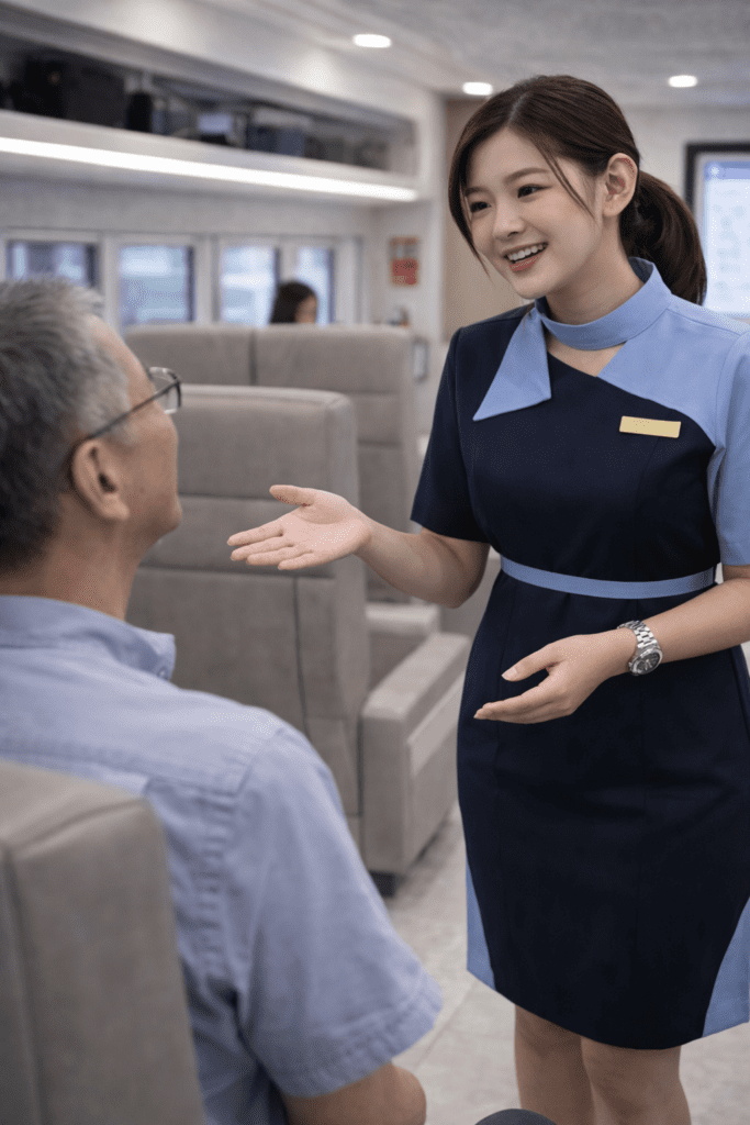 Salah satu materi utama dalam pelatihan pramugari kereta api adalah pelayanan penumpang. Materi ini penting karena tugas utama seorang pramugari kereta api adalah memberikan pelayanan yang nyaman, ramah, dan profesional kepada penumpang selama perjalanan. Pelayanan yang baik tidak hanya membuat penumpang merasa dihargai, tetapi juga menciptakan pengalaman perjalanan yang aman dan menyenangkan.