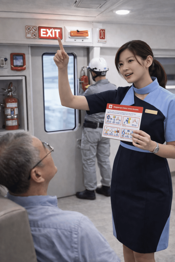 Di Aeronef Academy, keselamatan dan keamanan perjalanan adalah bagian penting dalam kurikulum pelatihan. Akademi memberikan pembelajaran yang terstruktur agar siswa memahami bahwa keselamatan penumpang adalah prioritas utama dalam profesi pramugari kereta api. Melalui berbagai latihan simulasi dan pembelajaran praktis, Akademi membantu siswa mempersiapkan diri untuk menjalankan tugas dengan tanggung jawab dan profesionalisme tinggi.