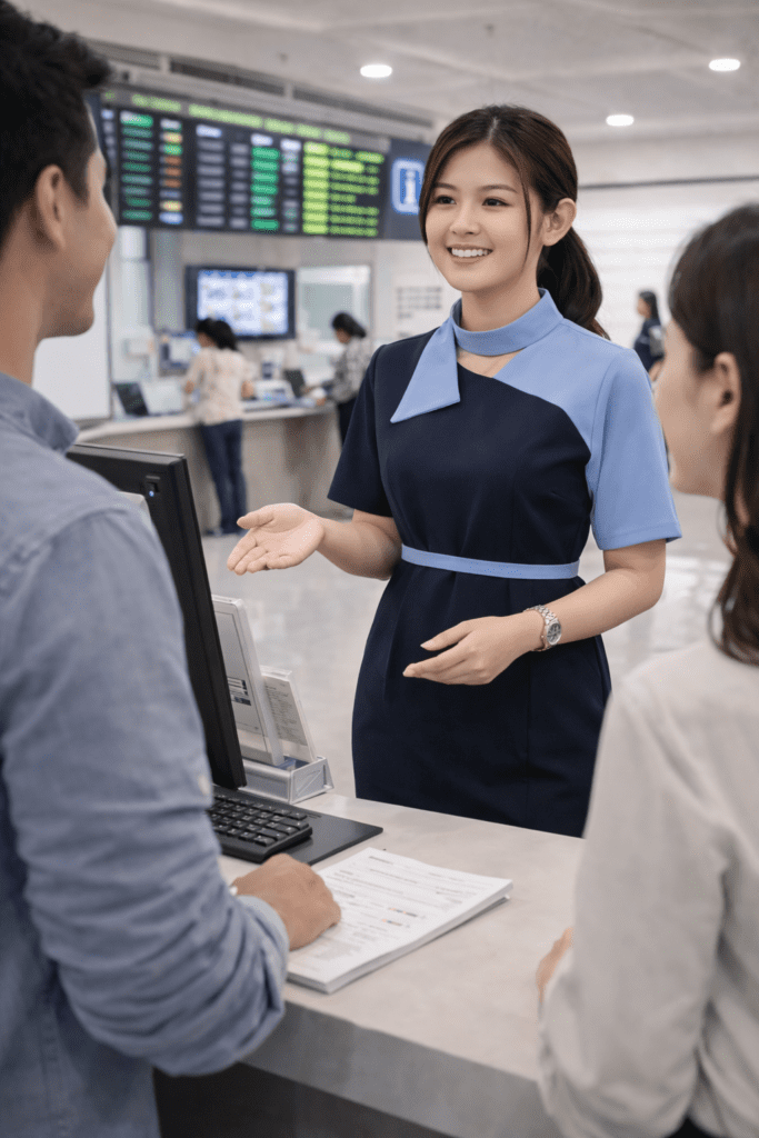 Ada beberapa posisi di industri penerbangan yang dapat diisi oleh lulusan sekolah pramugari kereta api. Salah satunya adalah staf pelayanan bandara. Tugas utama staf pelayanan bandara adalah membantu penumpang dalam berbagai proses sebelum dan sesudah penerbangan. Mereka memberikan informasi mengenai jadwal penerbangan, membantu proses check-in, dan memberikan arahan kepada penumpang mengenai prosedur di bandara.