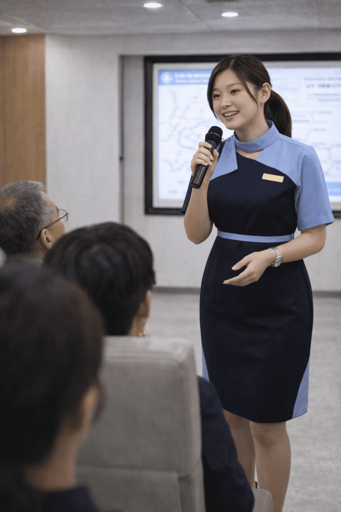 Di Aeronef Academy, pelatihan komunikasi dan public speaking menjadi salah satu fokus program pendidikan. Aeronef Academy memberikan berbagai latihan praktik untuk membantu siswa meningkatkan kemampuan berbicara, berinteraksi dengan penumpang, dan membangun komunikasi efektif dalam pelayanan transportasi. Dengan bimbingan dari instruktur berpengalaman, Aeronef Academy membantu siswa mengembangkan rasa percaya diri dan keterampilan komunikasi yang diperlukan dalam profesi pramugari kereta api.
