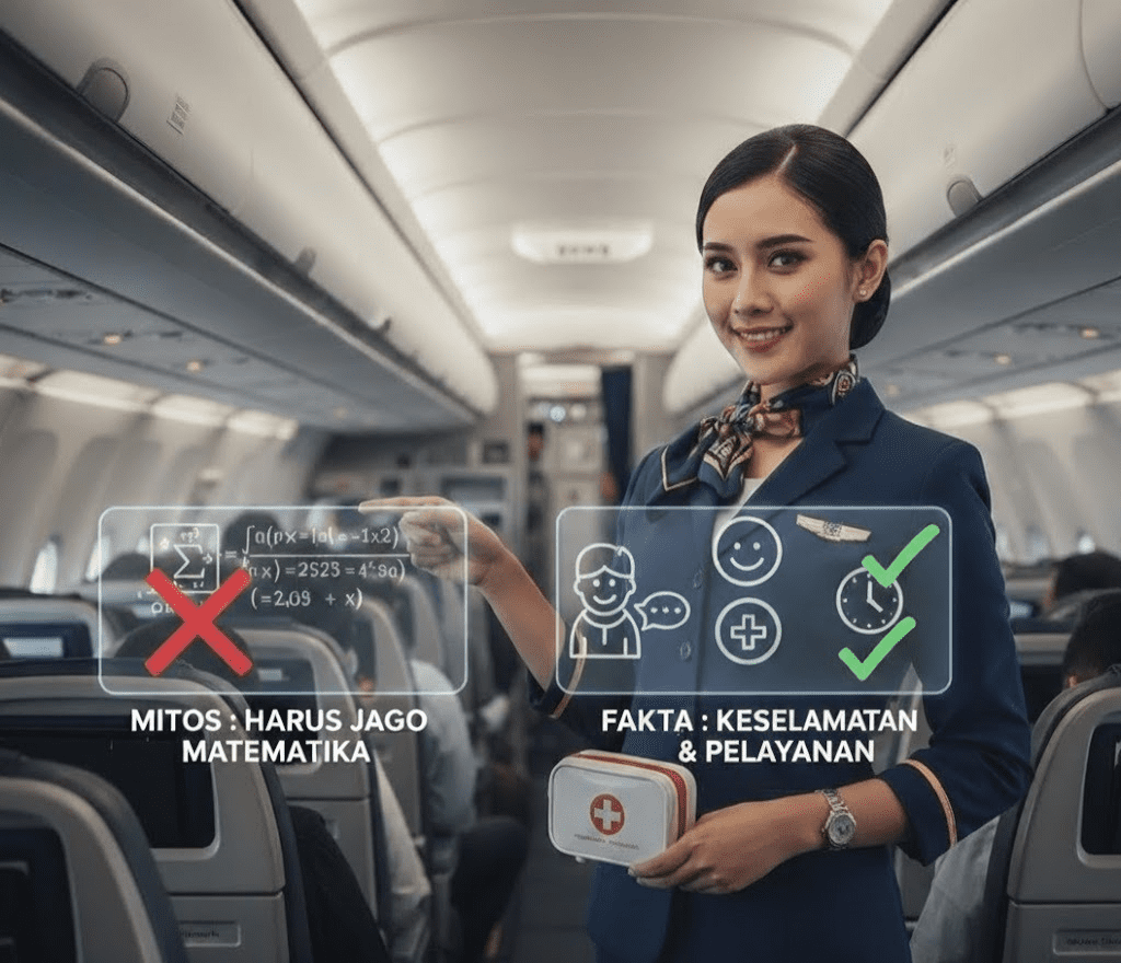 Mitos tentang keharusan pintar matematika sering kali membuat calon pramugari merasa ragu atau minder sebelum mencoba mengikuti seleksi. Padahal, yang lebih dibutuhkan adalah kesiapan mental, sikap profesional, dan kemampuan berinteraksi dengan penumpang secara positif. Selama calon pramugari memiliki kemampuan dasar yang memadai dan kemauan untuk belajar, keterbatasan dalam matematika tidak menjadi penghalang untuk berkarier di dunia penerbangan.