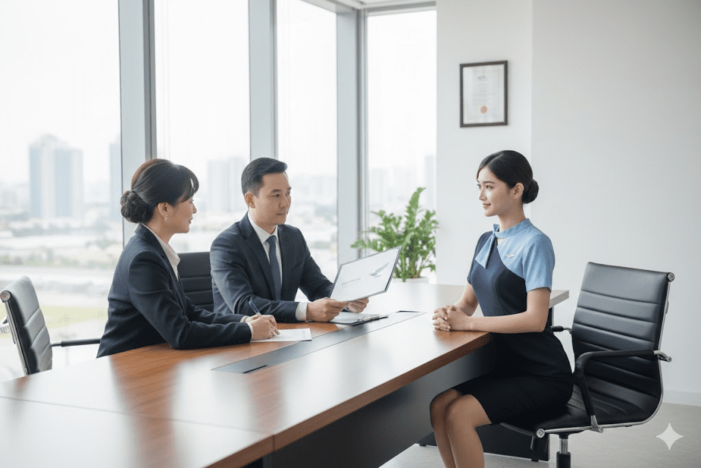 Dalam proses rekrutmen pramugari, maskapai biasanya menerapkan beberapa tahapan seleksi, mulai dari seleksi administrasi, pengecekan tinggi dan berat badan, tes kesehatan, psikotes, hingga sesi wawancara. Pada tahap wawancara, kepribadian, pola pikir, serta kemampuan komunikasi kandidat akan dinilai langsung oleh tim recruiter. Setiap tahap dirancang untuk memastikan calon awak kabin benar-benar memenuhi standar keselamatan, pelayanan, dan profesionalisme di industri penerbangan.
